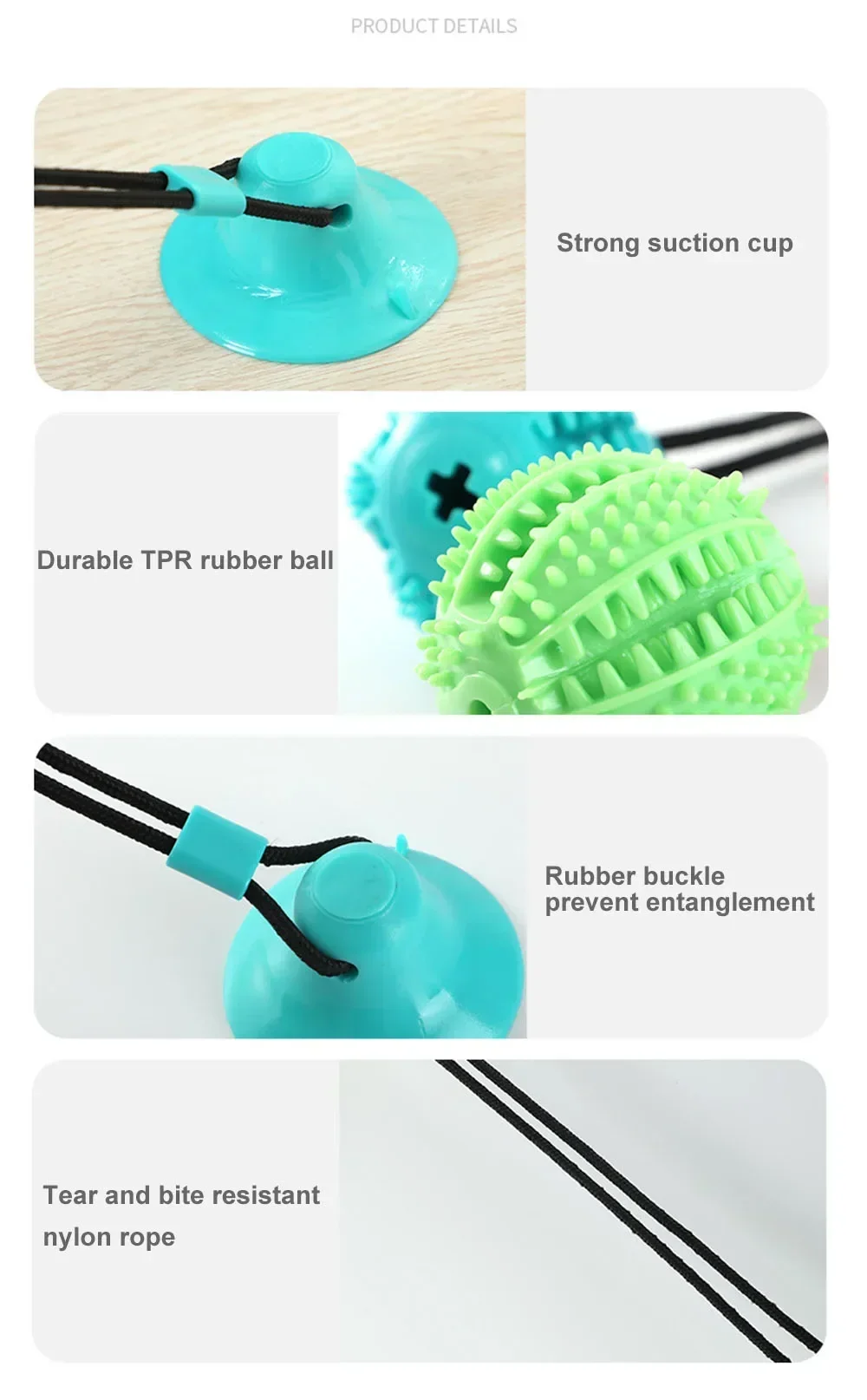 Features: Suction Cup, Tug Rope, Treat Dispenser, Teeth Cleaner
